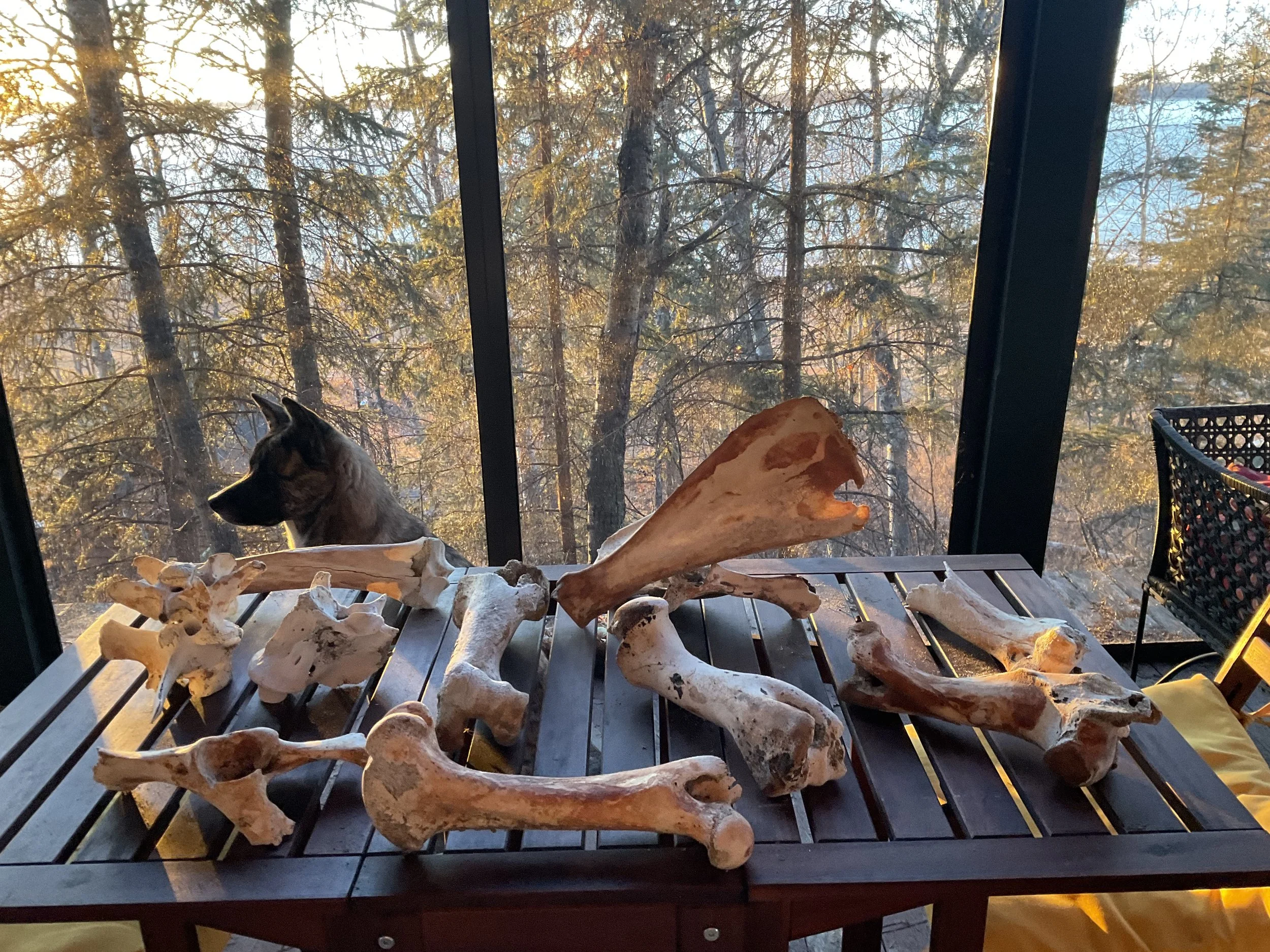 Bone-i-fone is a series of experimental sound objects I developed using materials collected along the alkaline lake near my home in rural Alberta. Each piece begins with a large, salt-bleached bone, often remains from cattle grazing the surrounding grasslands, that has been visibly altered by the lake’s high mineral content. These bones document ecological conditions such as mineral accretion, cyanobacterial presence, and exposure to fluctuating water levels.